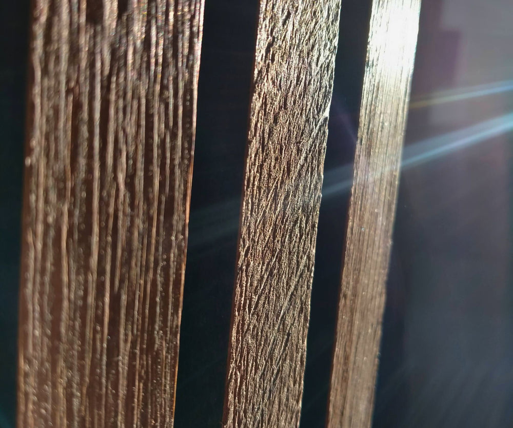 Le placage est constitué de bois massif d'une épaisseur de 0.6 mm, issue de foret gérée durablement.